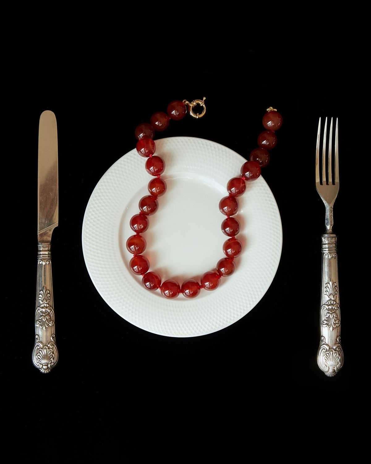 Esta sesión fotográfica narra la historia de una joven dueña de una tienda de bolsos que se reúne con un cliente en un restaurante para mostrarle sus productos. Lo que parece un encuentro de negocios se convierte en una tragedia cuando descubre que el hombre es su exnovio, quien la asesina. La editorial combina elementos de comida y accesorios para reflejar el contraste entre la elegancia exterior y la oscuridad que se oculta tras las apariencias.